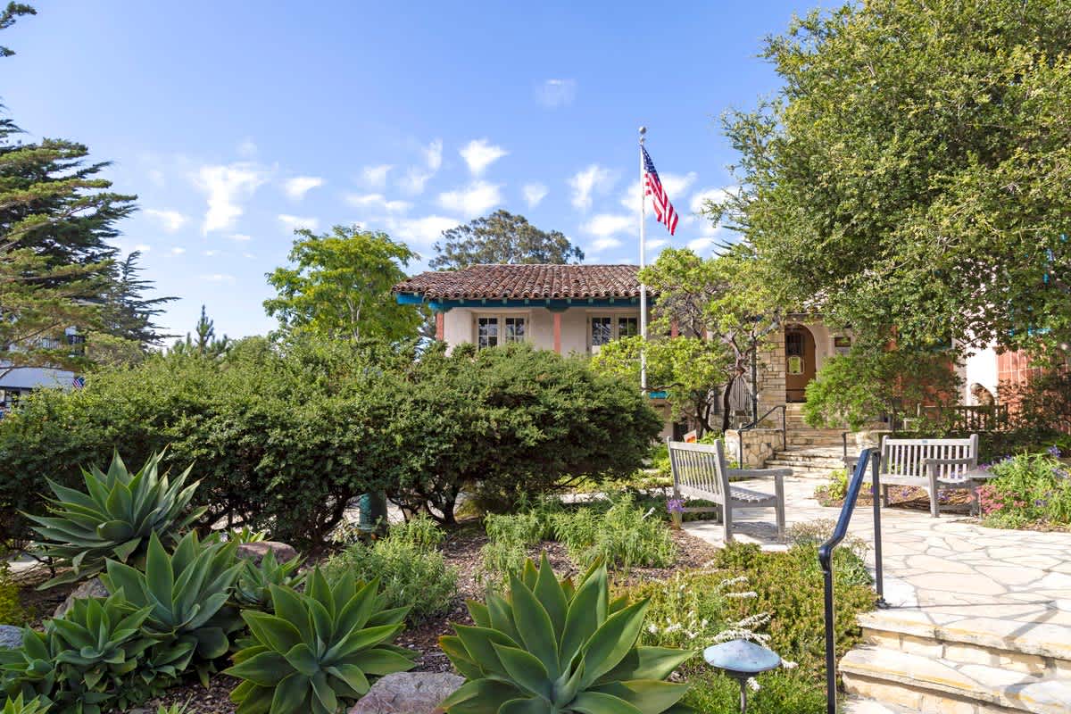 The Carmel-by-the-Sea Garden Club, a member of The Garden Club of America, maintains the garden at the Harrison Memorial Library (above). The club aims to stimulate the knowledge and love of gardening by protecting nature, beautification projects, and educating others. Other local civic improvements include working on the gardens at Piccadilly Park and the Constance Meach Ridder Memorial Garden at City Hall, along with protecting native species through the North Dunes Habitat Restoration Project above Carmel Beach.